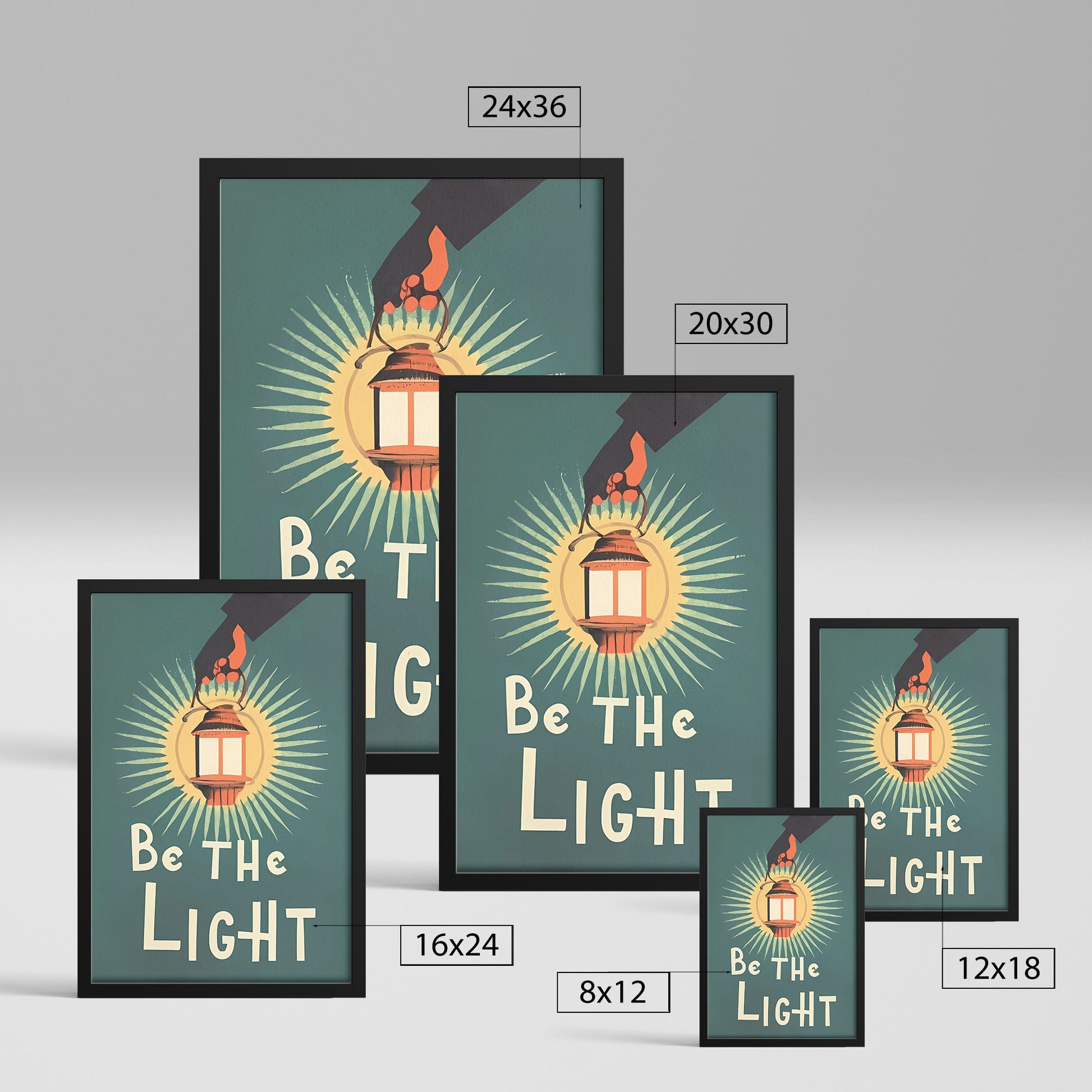 This framed poster captures the essence of retro charm while delivering a message of deep empowerment and the mesmerizing imagery of a person holding a glowing lantern, piercing through the darkness with their luminous presence. It invites you to embrace your role as a beacon of hope and faith. The words, "Be the Light," are elegantly and lovingly displayed, encouraging you to shine brightly.