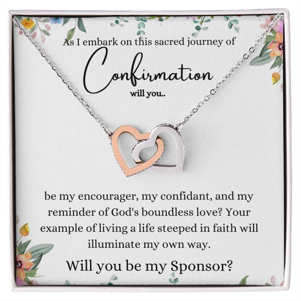 Confirmation Sponsor Gift - Godmother Proposal - Will You Be My Confirmation Sponsor - Interlocking Heart Necklace