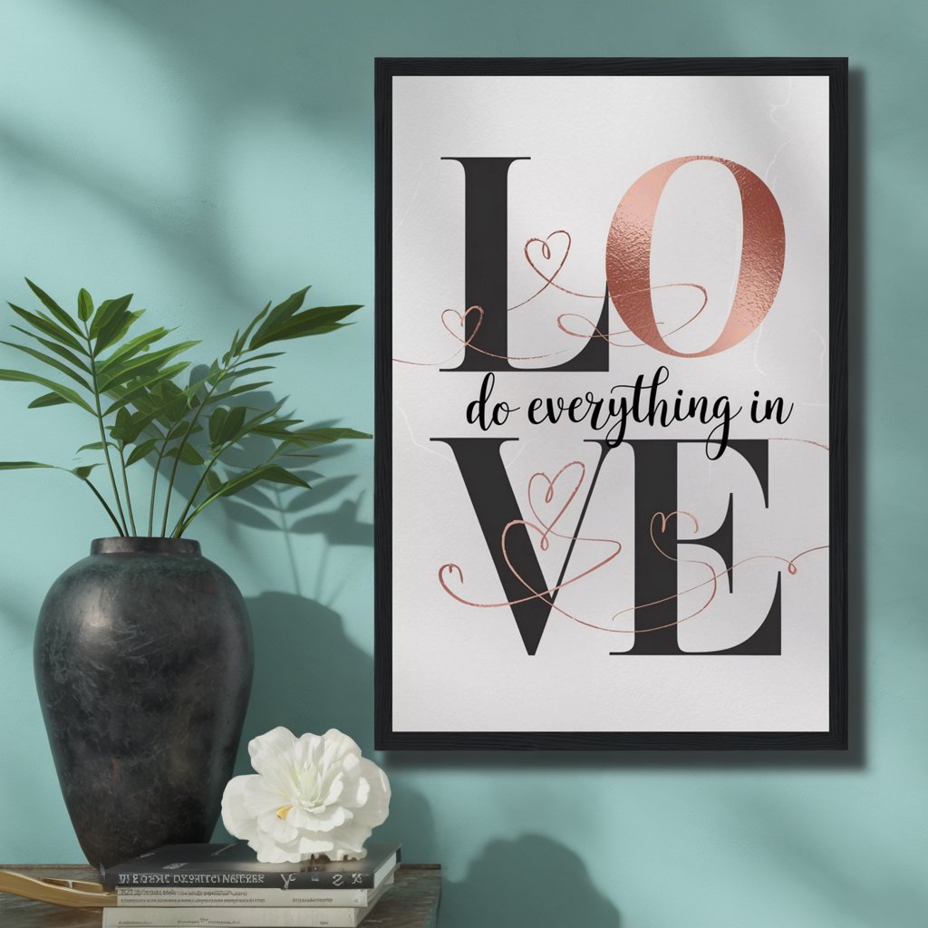 "Do Everything in Love" isn't just beautiful words on paper – it's a daily reminder of how we're called to live as Christians, inspired by 1 Corinthians 16:14. I poured my heart into creating this piece, carefully crafting each element to reflect the beauty of this scripture.
