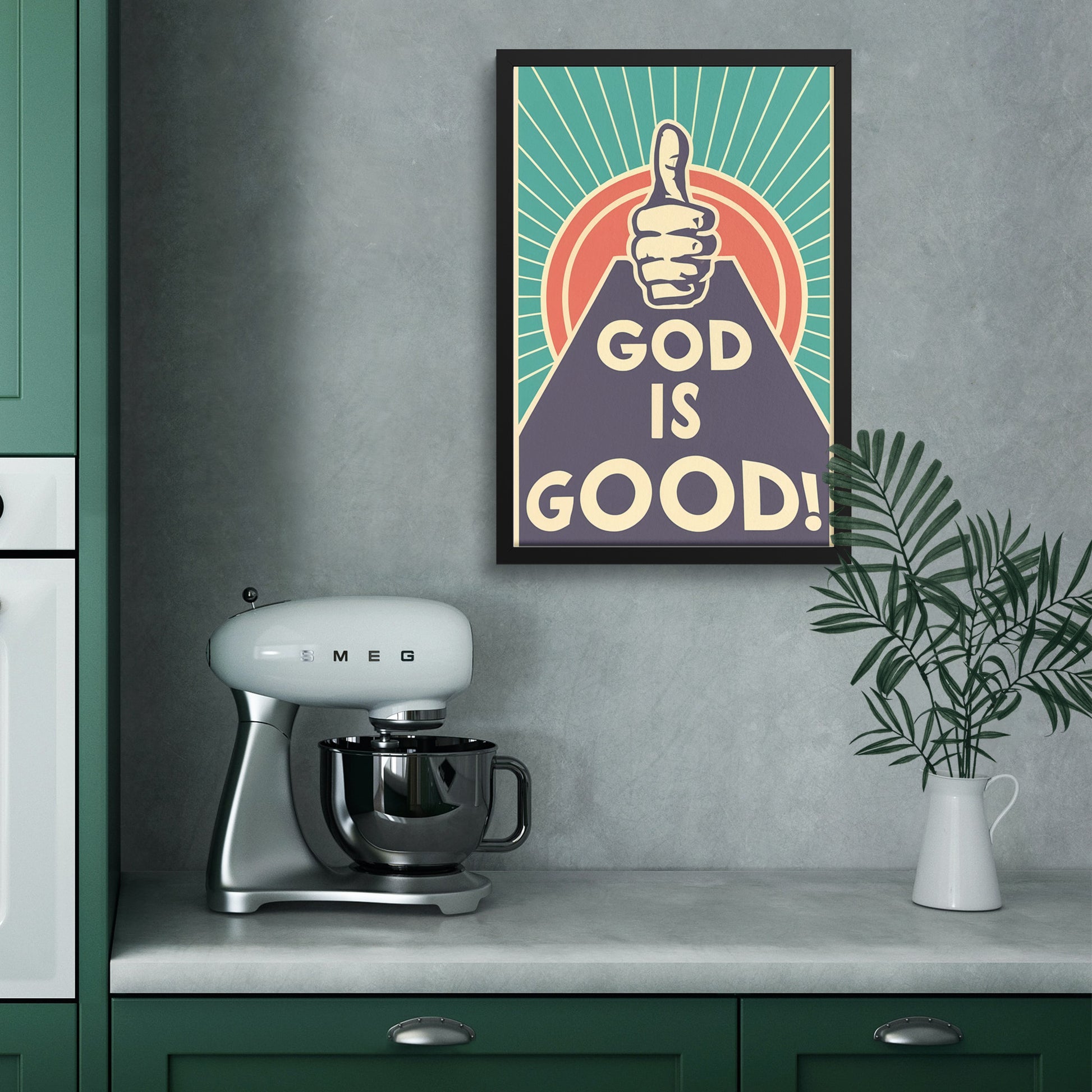 Hang this "God is Good Retro Style Framed Print" in your home, study, or any space where you seek a connection with timeless faith and a sense of comfort. Its nostalgic charm and profound message make it a cherished addition to any environment.