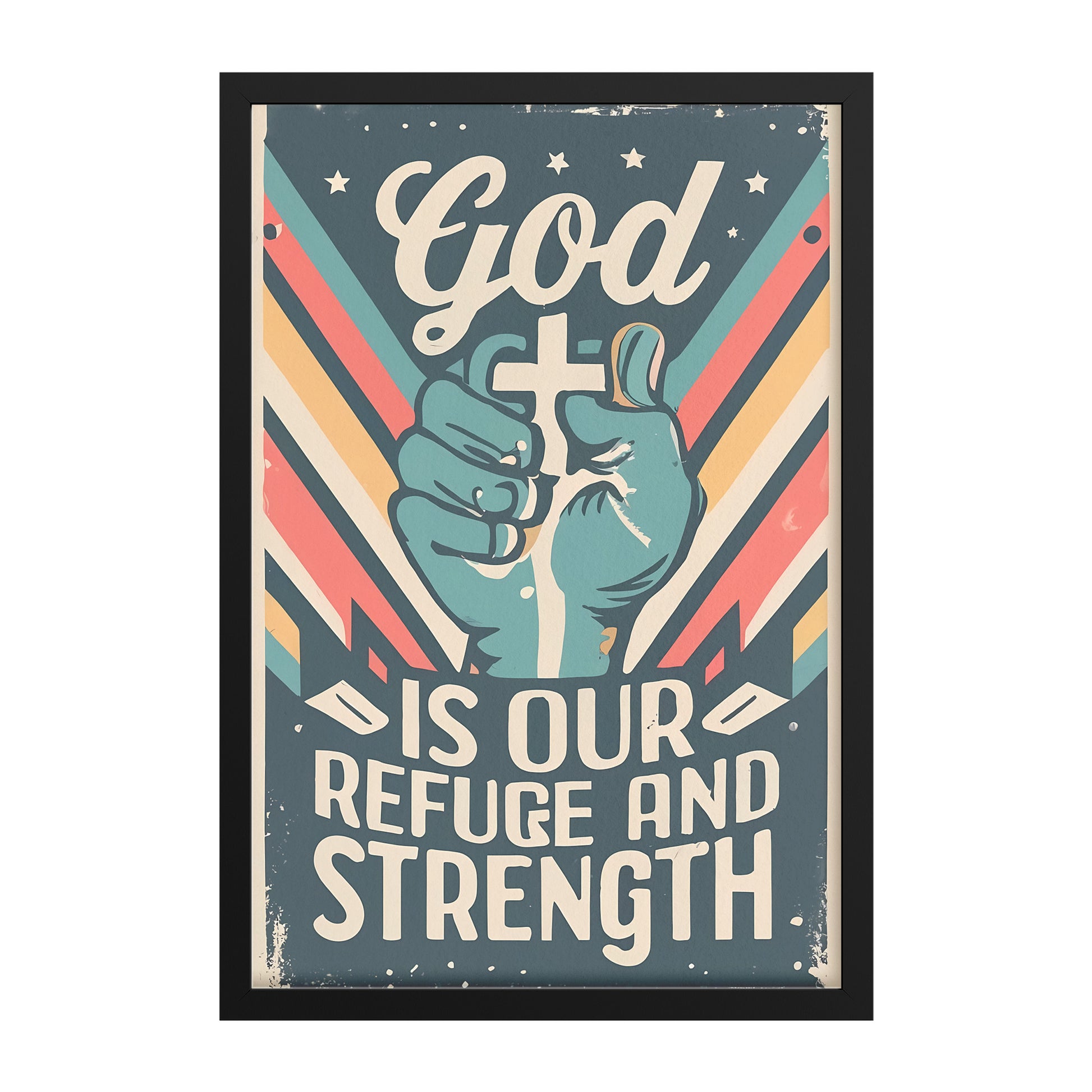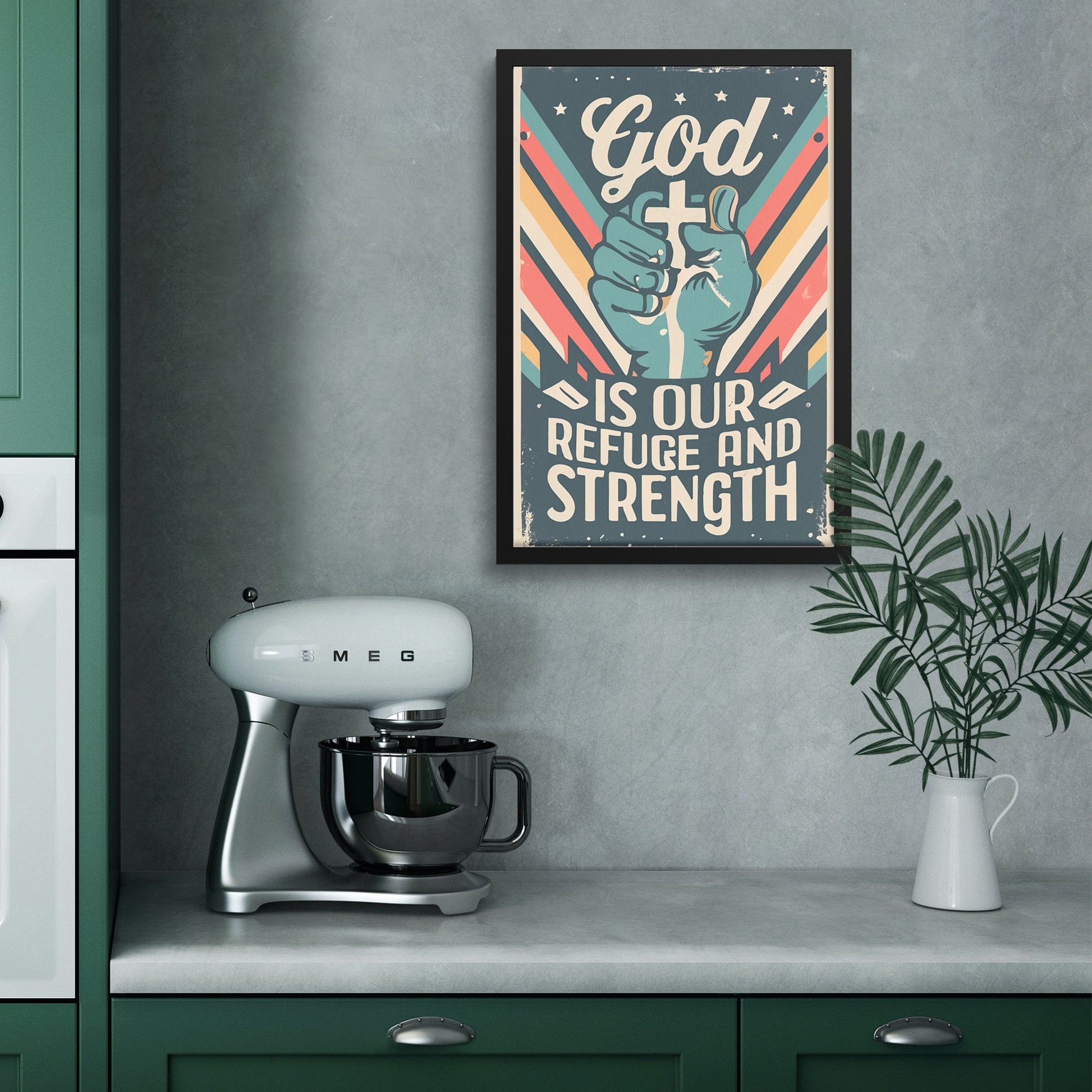 Step into a world of unwavering security and strength with our "God is Our Refuge and Strength Retro Style Framed Print." This captivating artwork not only graces your wall with vintage charm but also serves as a daily reminder of the unwavering protection and resilience found in God, our refuge and strength.