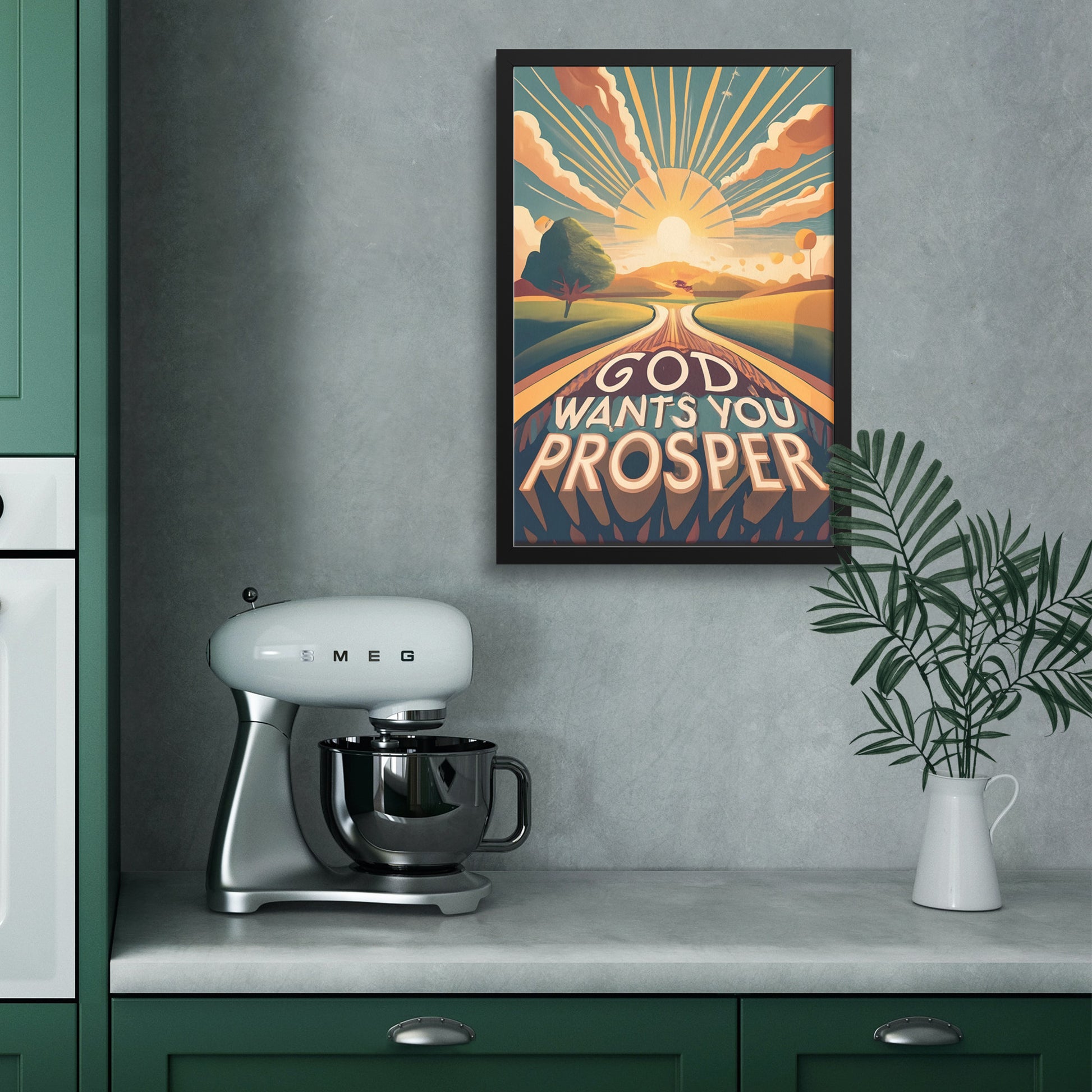 Hang this "God Wants You to Prosper Retro Style Framed Print" in your home, study, or any space where you seek daily inspiration and a reminder of the divine promise of prosperity. Its nostalgic charm and timeless message make it a cherished addition to any environment.