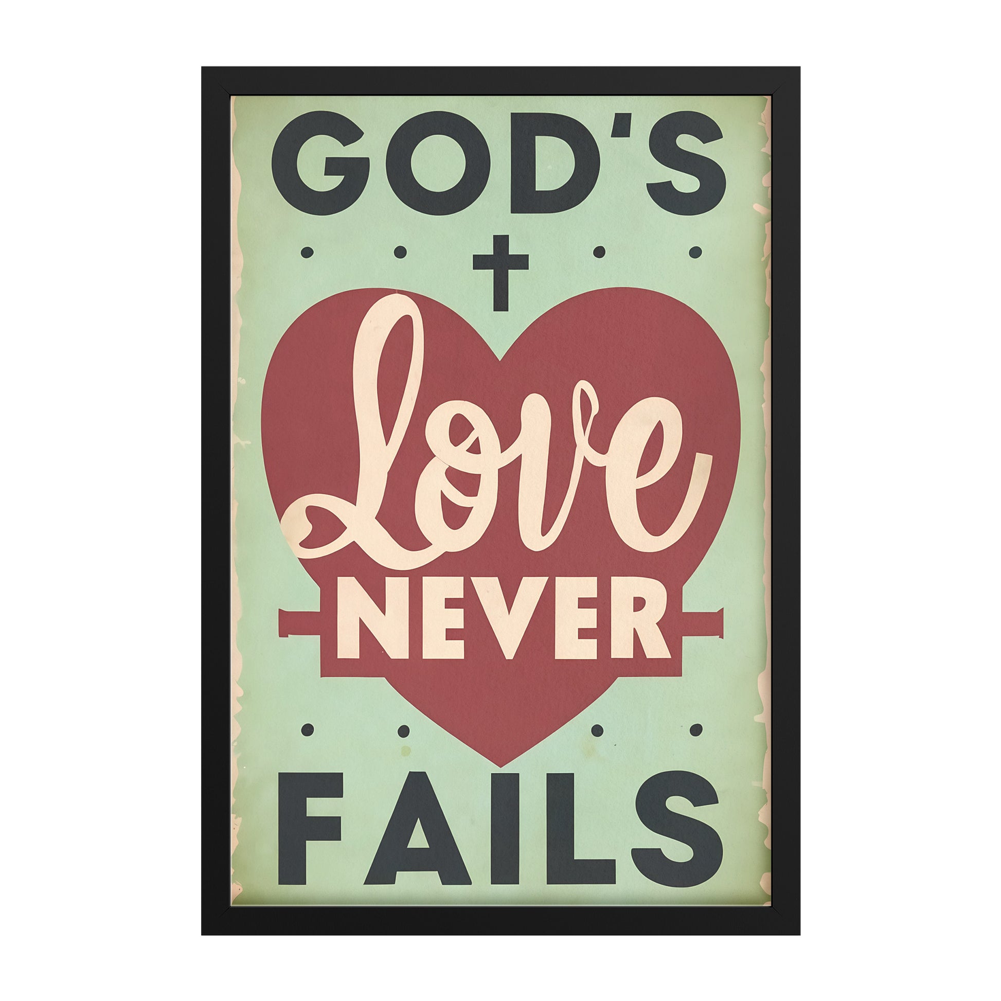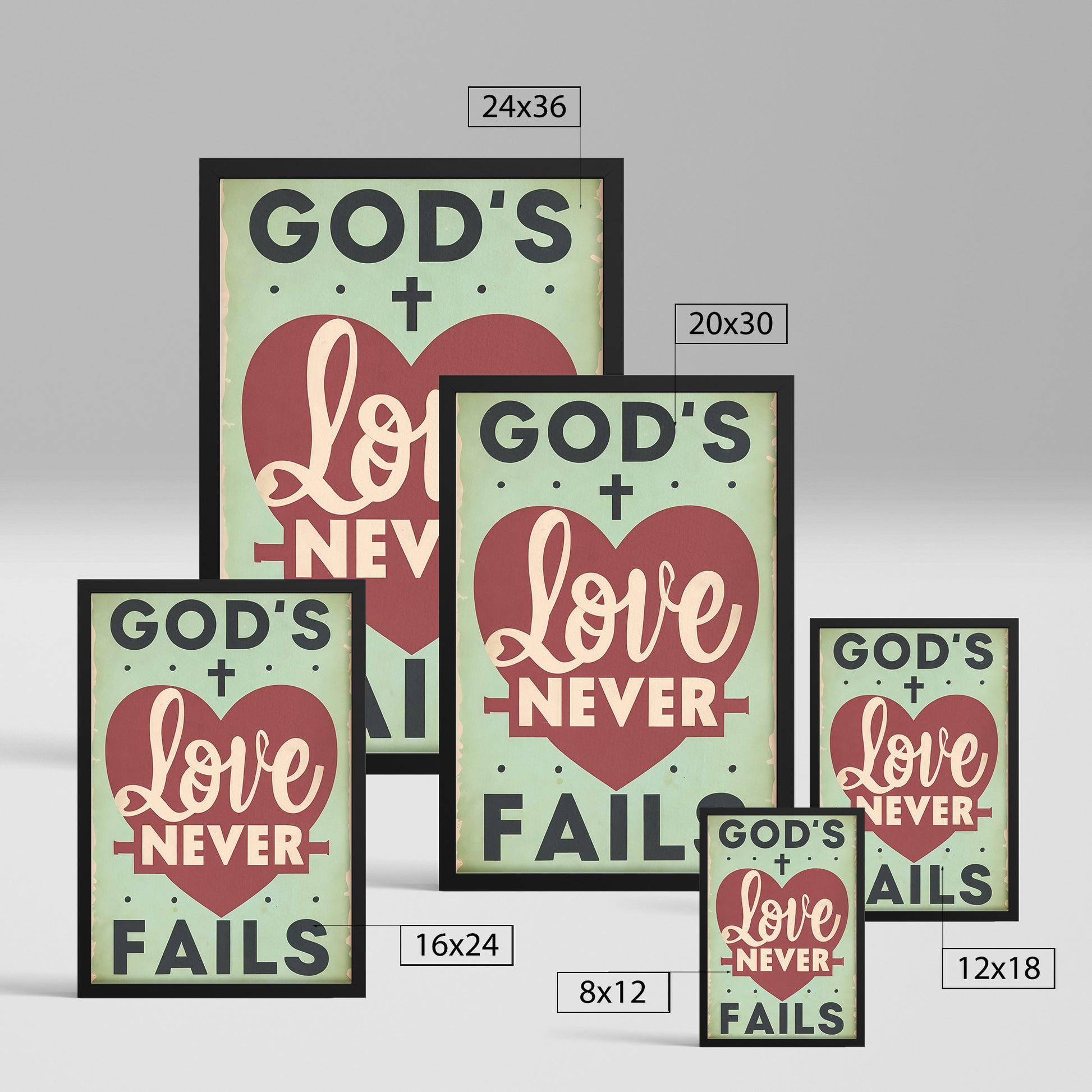 Hang this "God's Love Never Fails Retro Style Framed Print" in your home, sanctuary, or any space where you seek daily inspiration and a reminder of the unchanging and nurturing love of the divine. Its nostalgic charm and timeless message make it a cherished addition to any environment.