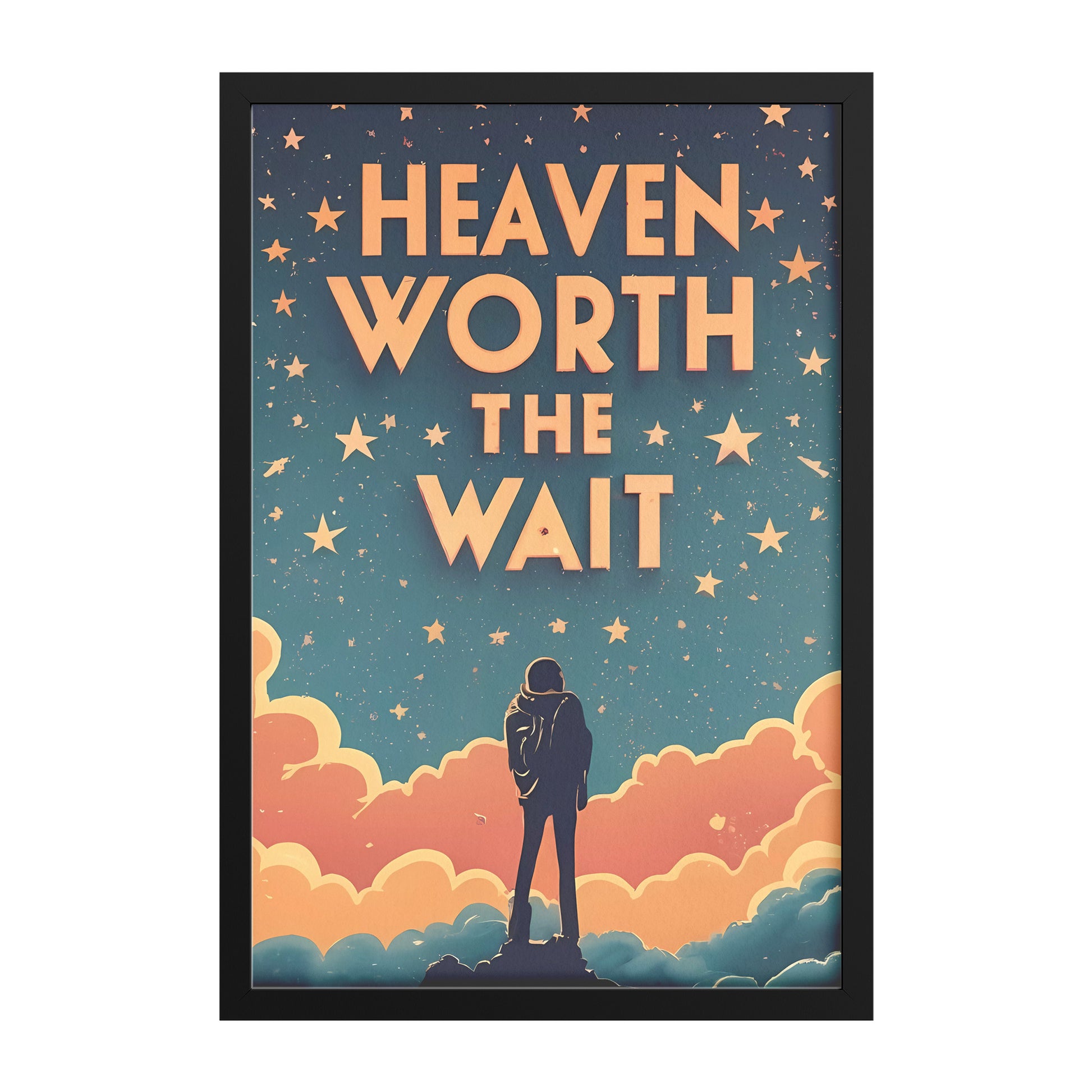 This framed poster captures the essence of retro charm while delivering a message of enduring hope and the captivating imagery of a starry night sky. It evokes the timeless allure of gazing at the heavens, filled with stars that symbolize the promise of a glorious eternity. The words, "Heaven: Worth the Wait," are elegantly and lovingly displayed, inviting you to embrace the patient faith that leads to heavenly rewards.