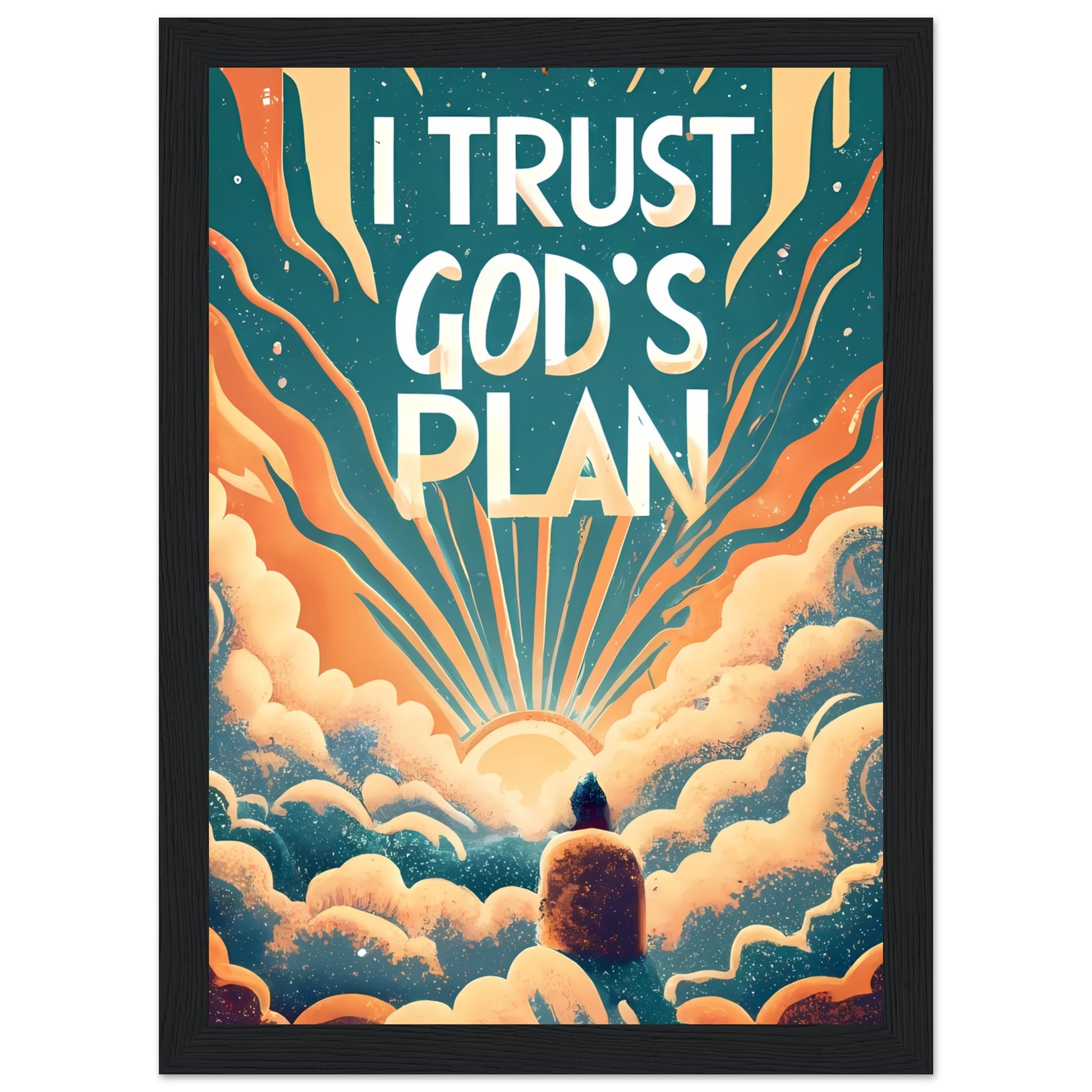 Embrace the profound beauty of trust with our "I Trust God's Plan Framed Poster." This captivating piece isn't just a visual delight; it's a resounding declaration of faith and a reminder that, even in life's uncertainties, we find solace in the divine plan, a testament to the power of trust.