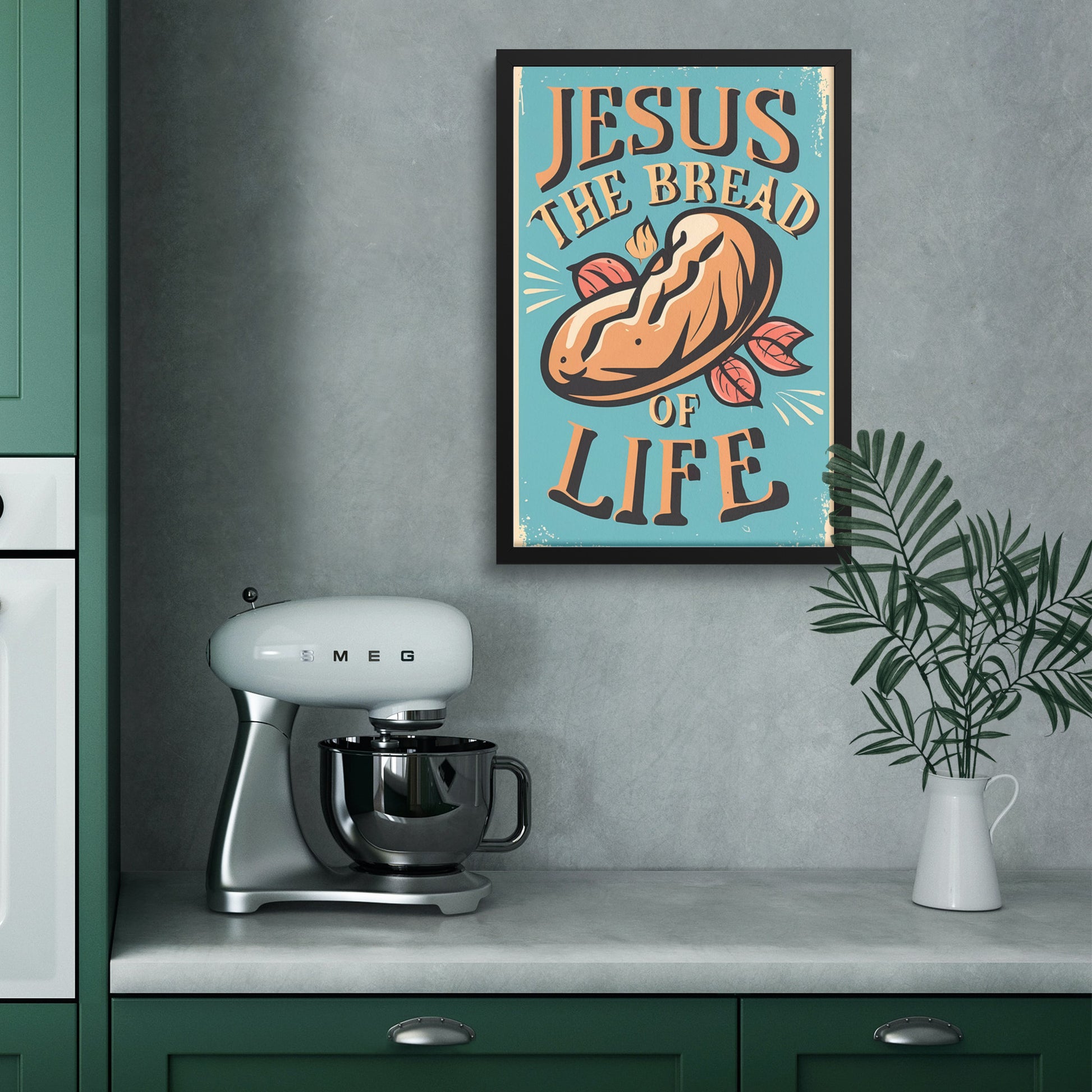 Hang this "Jesus is the Bread of Life Retro Style Framed Print" in your home, prayer space, or any area where you seek daily inspiration and a reminder of the spiritual abundance that Jesus offers. Its nostalgic charm and timeless message make it a cherished addition to any environment.