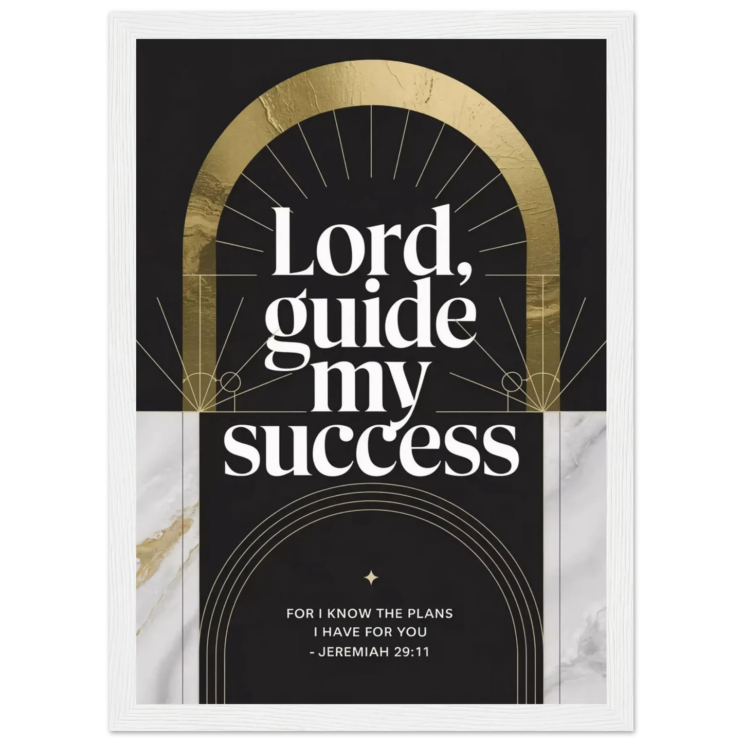 Your success journey deserves a daily reminder of God's faithful guidance. This premium wall art pairs the powerful prayer "Lord, Guide My Success" with the beloved promise from Jeremiah 29:11 in a sophisticated design of charcoal, gold, and pearl white. The elegant marble touches and ethereal light rays create an atmosphere of divine inspiration in your space. Perfect for your office, prayer room, or as a meaningful gift for graduates, entrepreneurs, and professionals seeking to align their ambitions with God's plan. Each piece is crafted with premium materials to ensure lasting quality that matches its timeless message.