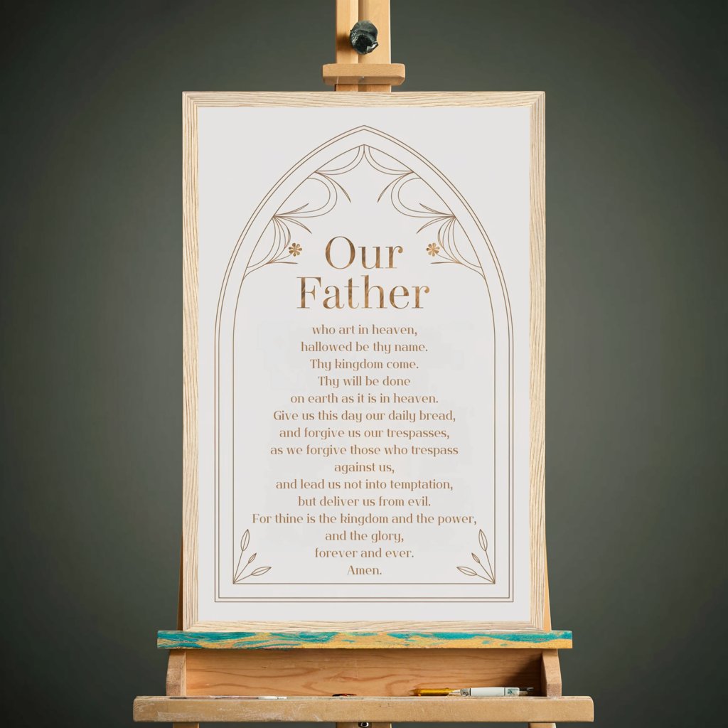 Looking for a fresh way to display the prayer Jesus taught us? I created this piece to blend the timeless beauty of cathedral architecture with clean, modern design that fits beautifully in today's homes. The Lord's Prayer flows elegantly within a contemporary arch frame, making it a meaningful focal point for any room. I chose champagne gold text against a warm antique white background so it feels both special and welcoming - like a quiet moment of prayer in your favorite sacred space. Whether it's for your living room, prayer corner, or as a thoughtful gift for a special occasion, this print reminds us of the simple yet profound words that connect us to our Father in heaven.