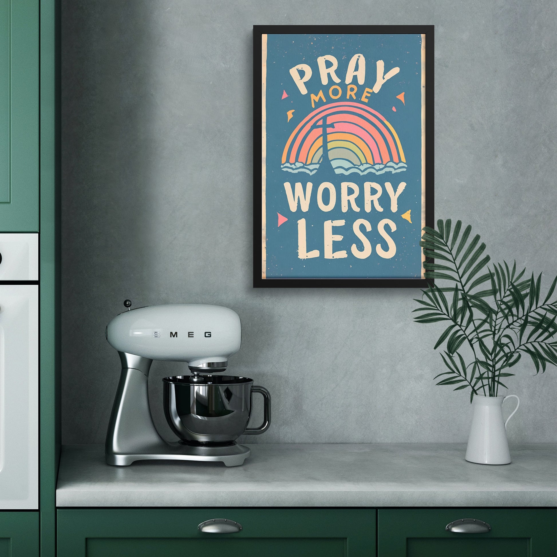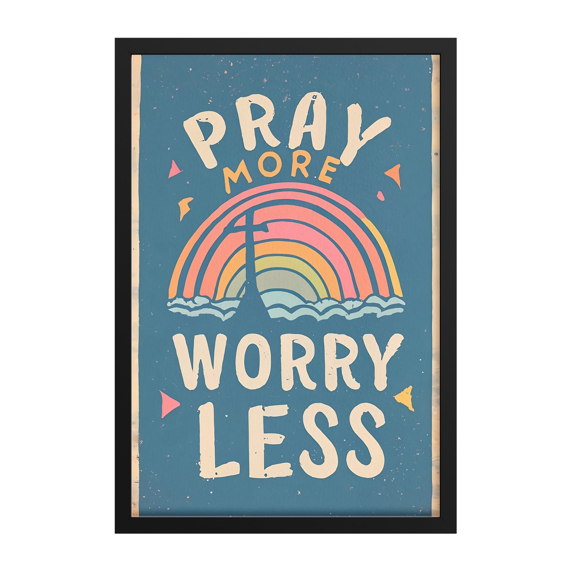 Hang this "Pray More, Worry Less Retro Style Framed Print" in your home, meditation space, or any area where you seek daily inspiration and a reminder of the profound shift that prayer brings to our lives. Its nostalgic charm and timeless message make it a cherished addition to any environment.