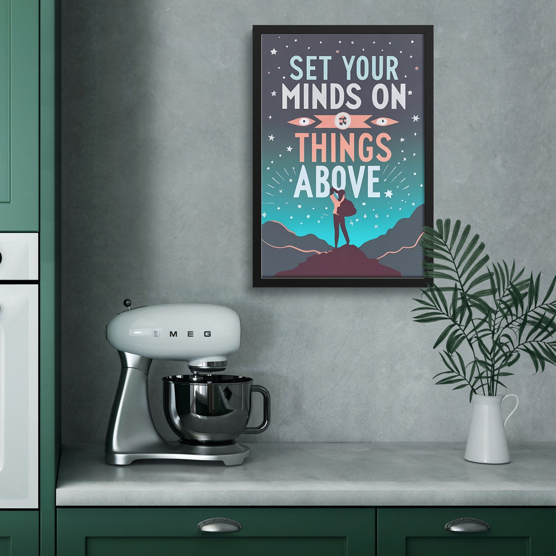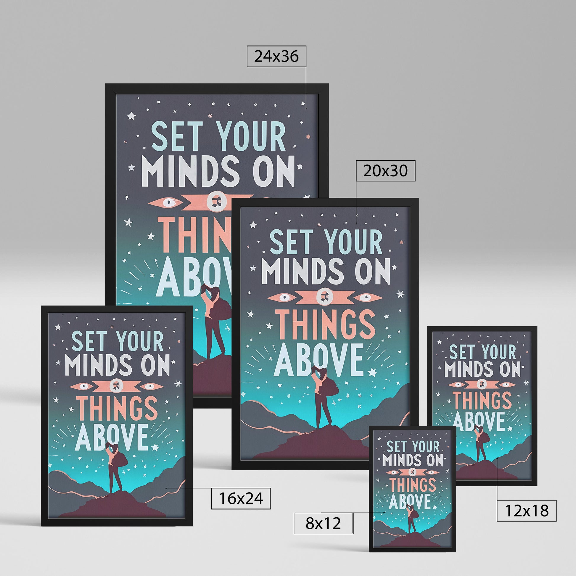 Prepare to embark on a journey of transcendent contemplation, spiritual elevation, and unwavering faith with our "Set Your Minds on Things Above Retro Style Framed Poster." This captivating masterpiece isn't just a decorative piece; it's an invitation to elevate your thoughts and aspirations to heavenly heights, echoing the profound truth found in Colossians 3:2: "Set your minds on things above, not on earthly things."