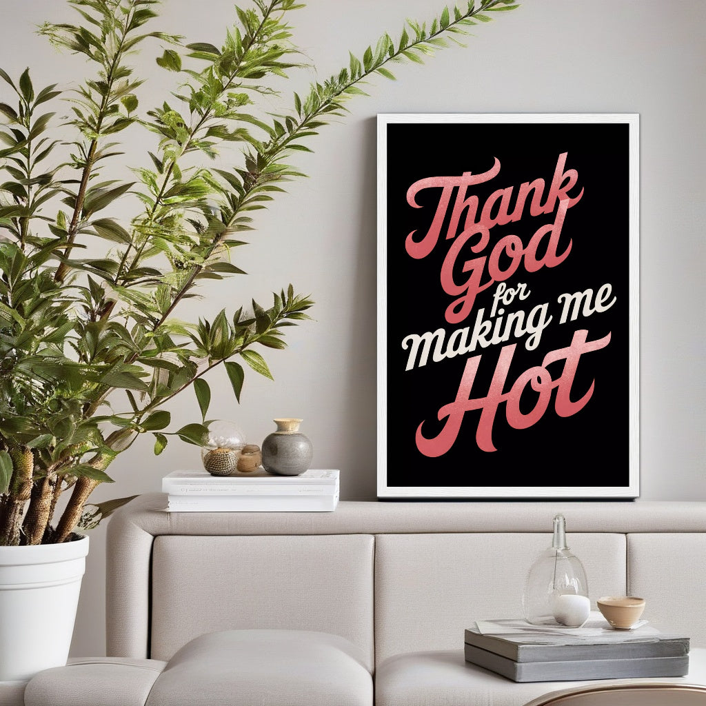Thank God I'm Hot | Retro Typography Wall Art | Faith Quote