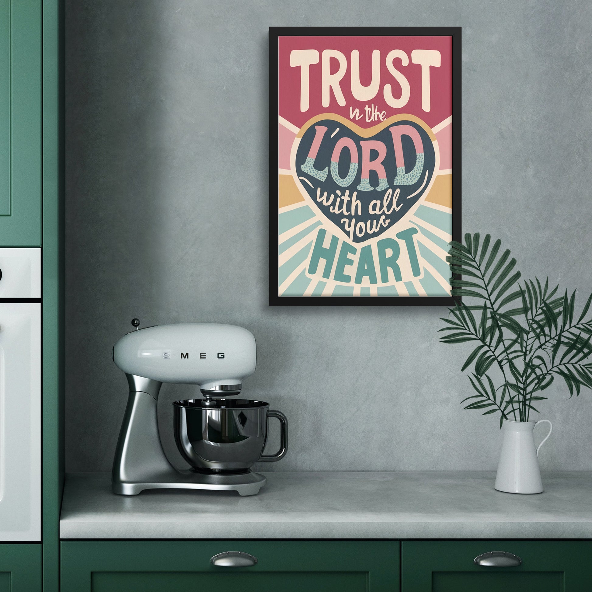 Hang this "Trust in the Lord with All Your Heart Retro Style Framed Print" in your home, study, or any space where you seek daily inspiration and a reminder of the profound trust we can place in the divine. Its nostalgic charm and timeless message make it a cherished addition to any environment.