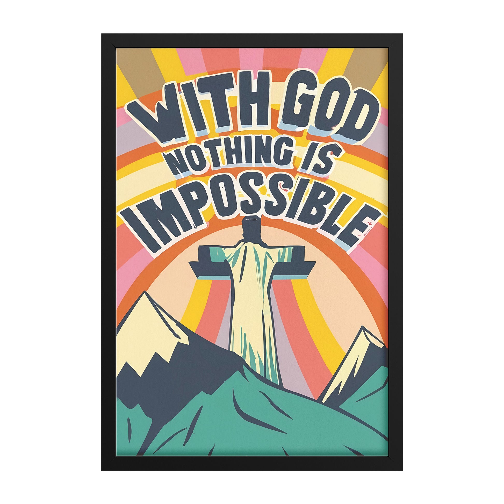 Hang this "With God Nothing Is Impossible Retro Style Framed Print" in your home, study, or any space where you seek daily inspiration and a reminder of the transformative possibilities that faith in God offers. Its nostalgic charm and profound message make it a cherished addition to any environment.